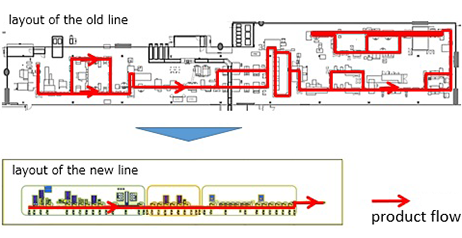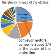 The conventional production lines, which use long belt conveyors, account for a large proportion of total electric consumption. To reduce the plant’s environmental impact, we considered the reduction of power consumption to be necessary.