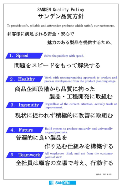 Sanden Quality Management Policy