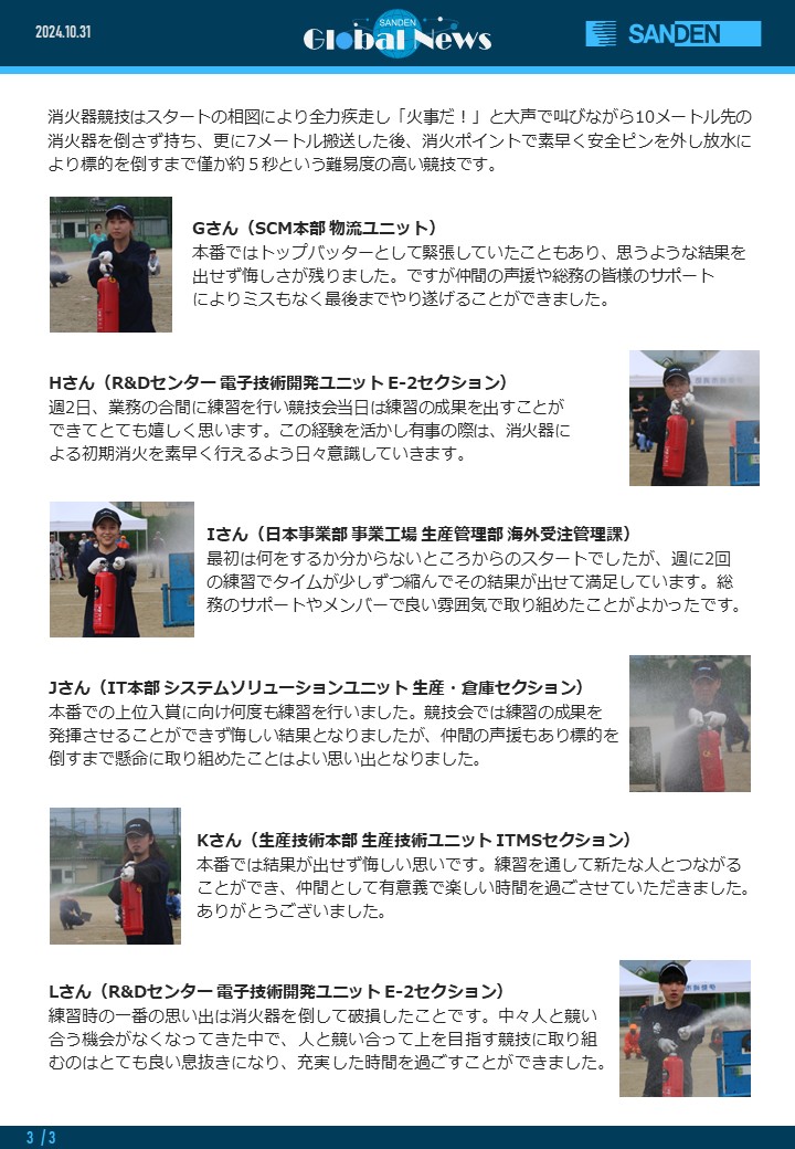 当社は国内のみならずグローバル企業として海外拠点においても安全衛生活動を積極的に実施しています。パキスタン工場は安全衛生管理活動がお取引先様より高い評価を受け表彰され、さらにHisenseグループからも表彰されています。安全管理活動を推進するため、国内では副社長および各部門責任者、海外では拠点責任者による安全パトロールを毎月欠かさず実施し、翌月までに是正を完了させるように進捗もKPI管理項目のひとつとして共有しています。事故や怪我の未然防止活動には他社の事例も積極的に取り入れ、月次点検や緊急点検、長期休暇前の総点検などパトロール以外にも独自の点検基準書作成し、マンネリ化しない取組みを実践しています。労働衛生では海外拠点独自の衛生管理や健康管理に関わる事例を集め、定期的に良好事例として情報展開しています。この展開により類似活動の推進と新たな取り組みに対する後押しになっています。報告には責任者の写真を必須としています。
